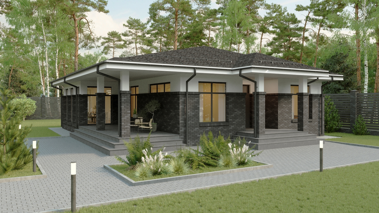 Одноэтажный загородный дом
